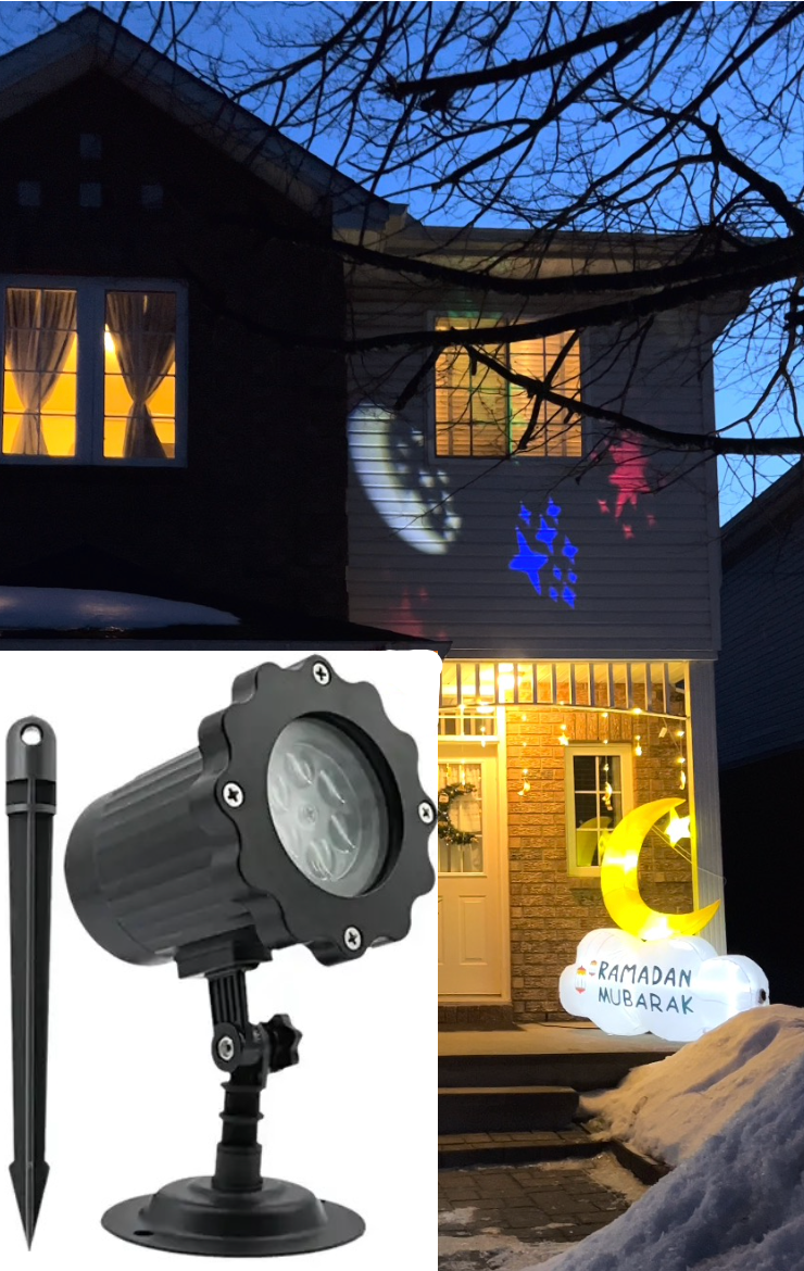 احتفل بشهر رمضان المبارك مع بروجكتر الاضاءة الرمضانية، المصمم لإضاءة منزلك بروح رمضان. يقوم هذا البروجكتر بعرض أنماط جميلة مما يخلق جوًا ساحرًا مثاليًا لفترة رمضان.