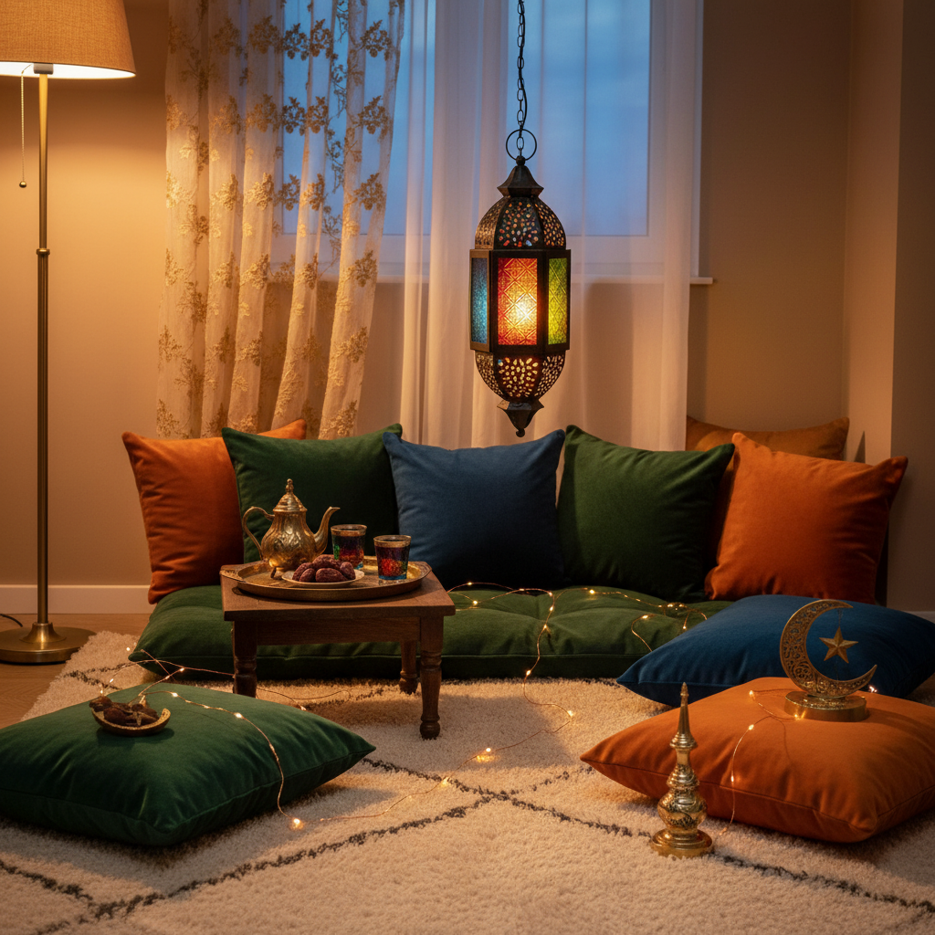 Discover the beauty of our Hanging Ramadan Mosaic Metal Lantern, crafted with vibrant Islamic-style stained glass panels. Measuring 12.5 x 34 cm, this elegant lantern adds a warm decorative touch to any space. It includes a hanging chain for easy display. Candle is not included.