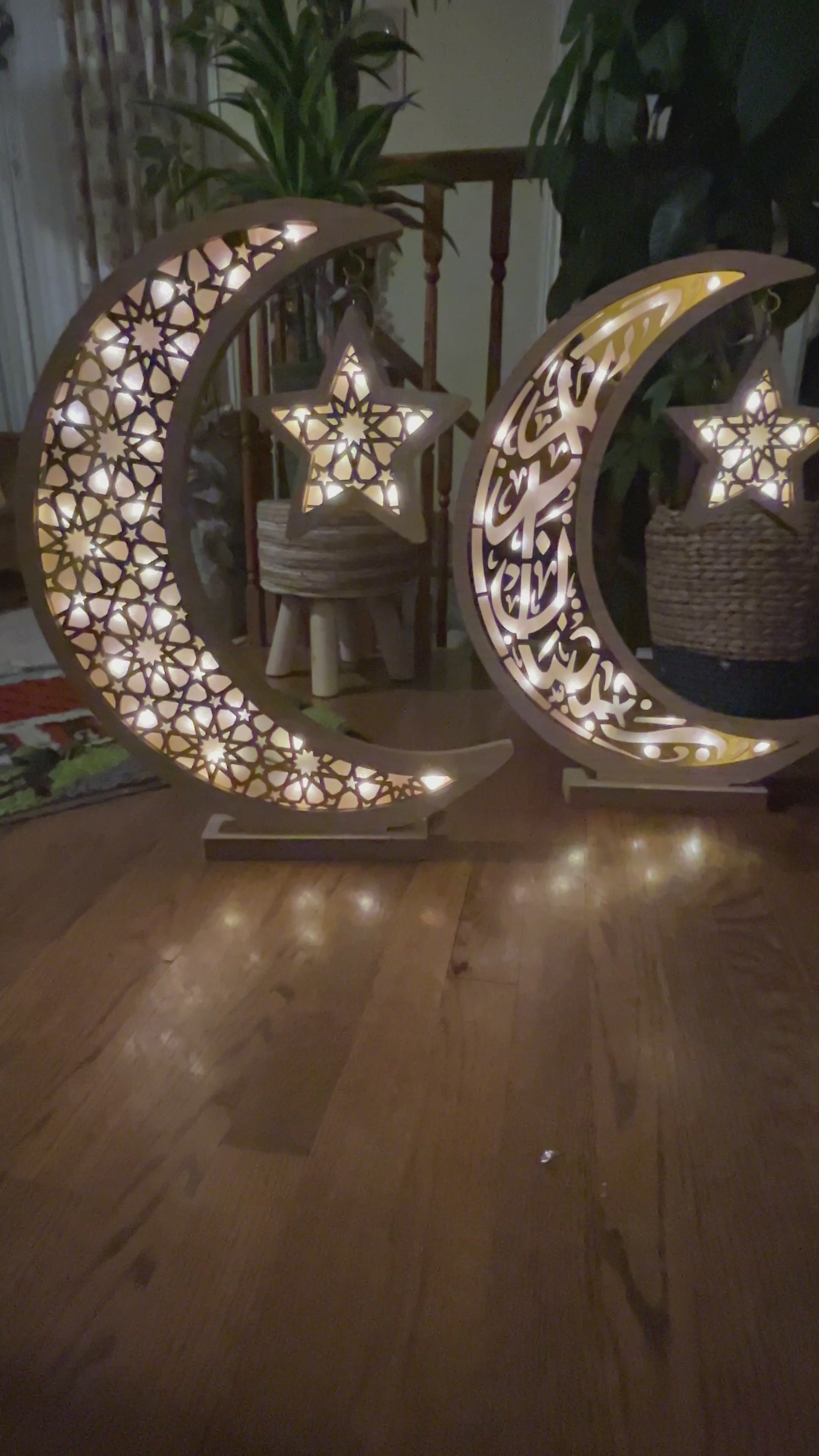أضىء ليالي رمضان مع ديكور الهلال الكبير الذي يحتوي على إضاءة LED، مصنوع من الخشب والأكريليك.
