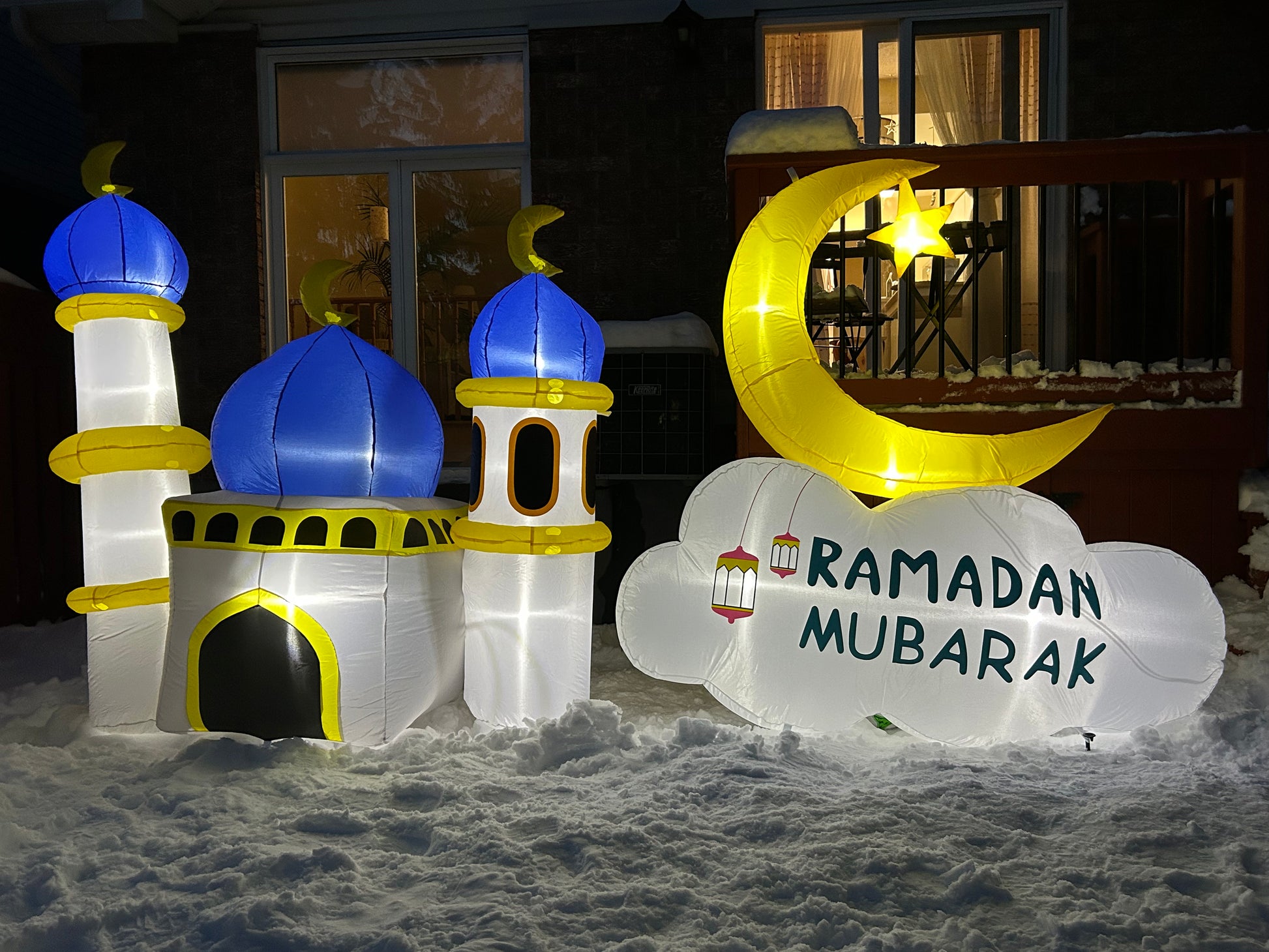 و المضاء بأضواء LED ، سيجذب الانتباه ويخلق أجواء احتفالية خلال شهر رمضان والعيد. منفاخ الهواء المدمج سوف يبقيها منتفخة في جميع الأوقات.