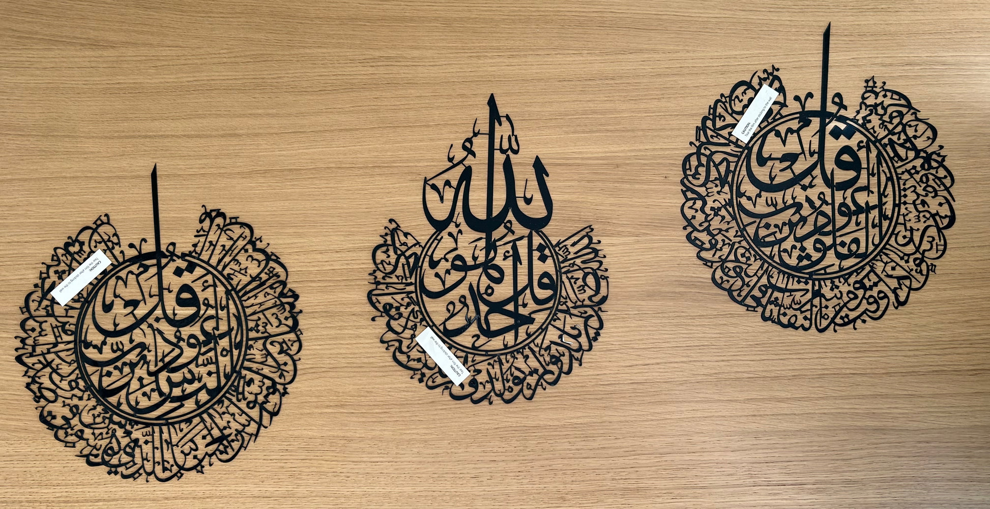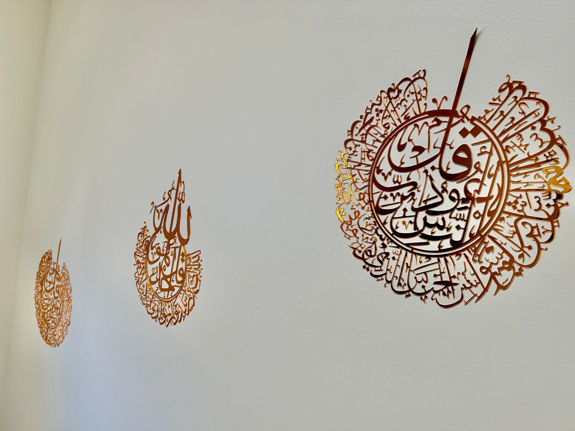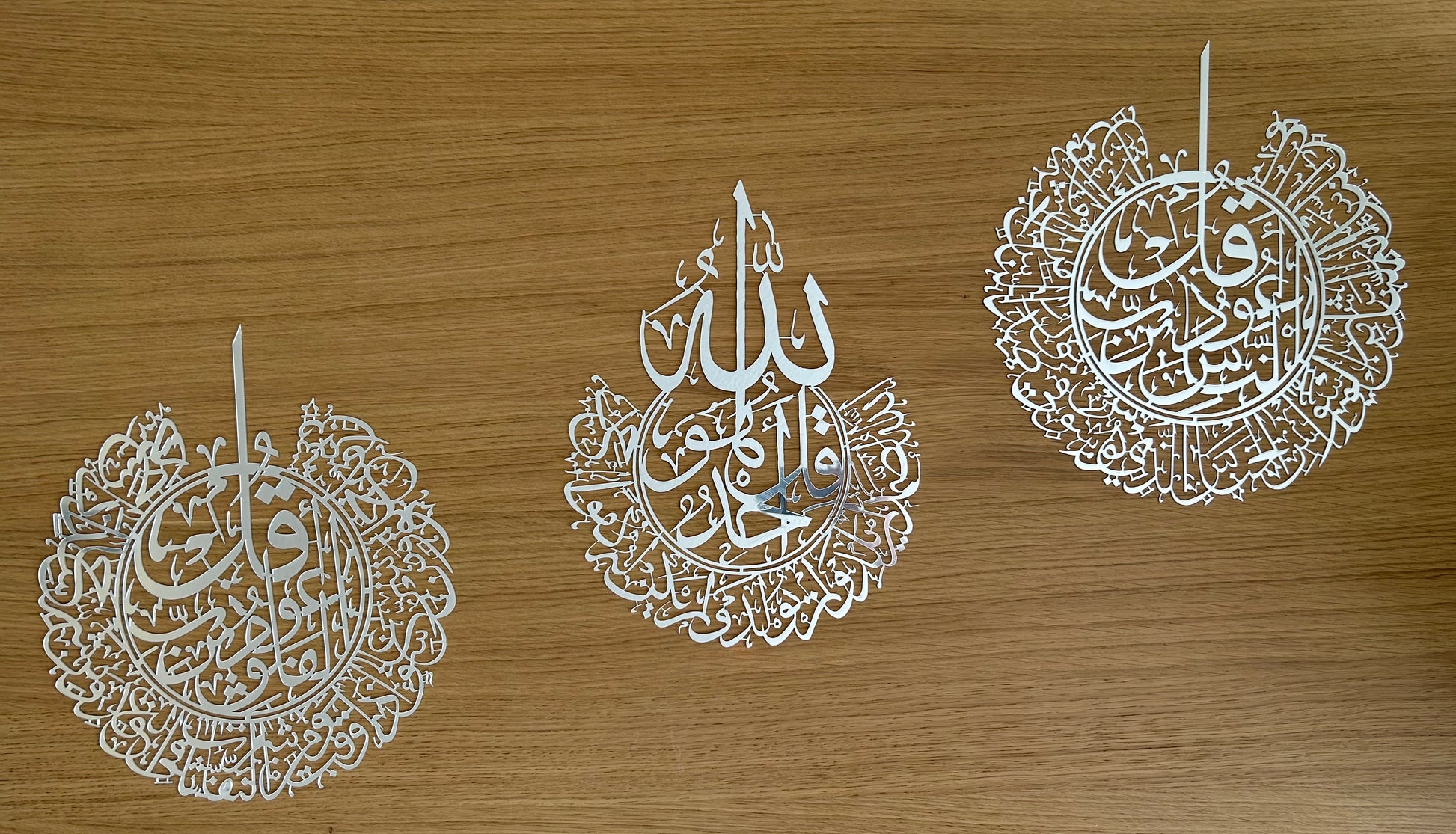 نقدم لكم المجموعة الجميلة المكونة من طقم ستيكرات اكريليك للمعوذات على شكل ديكورات للحوائط تتضمن سورة الإخلاص ، وسورة الناس ، وسورة الفلق.