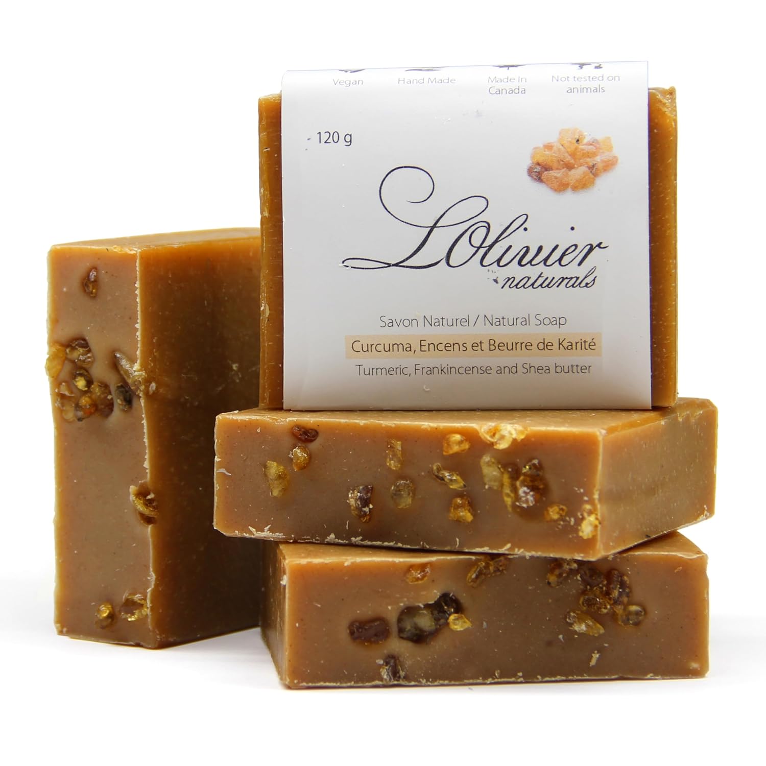 Our formula features a balanced blend of natural and organic ingredients that support skin health and renewal. Utilizing pure frankincense, this soap gently purifies the skin and rejuvenates its cells, giving it a smoother and more radiant appearance.